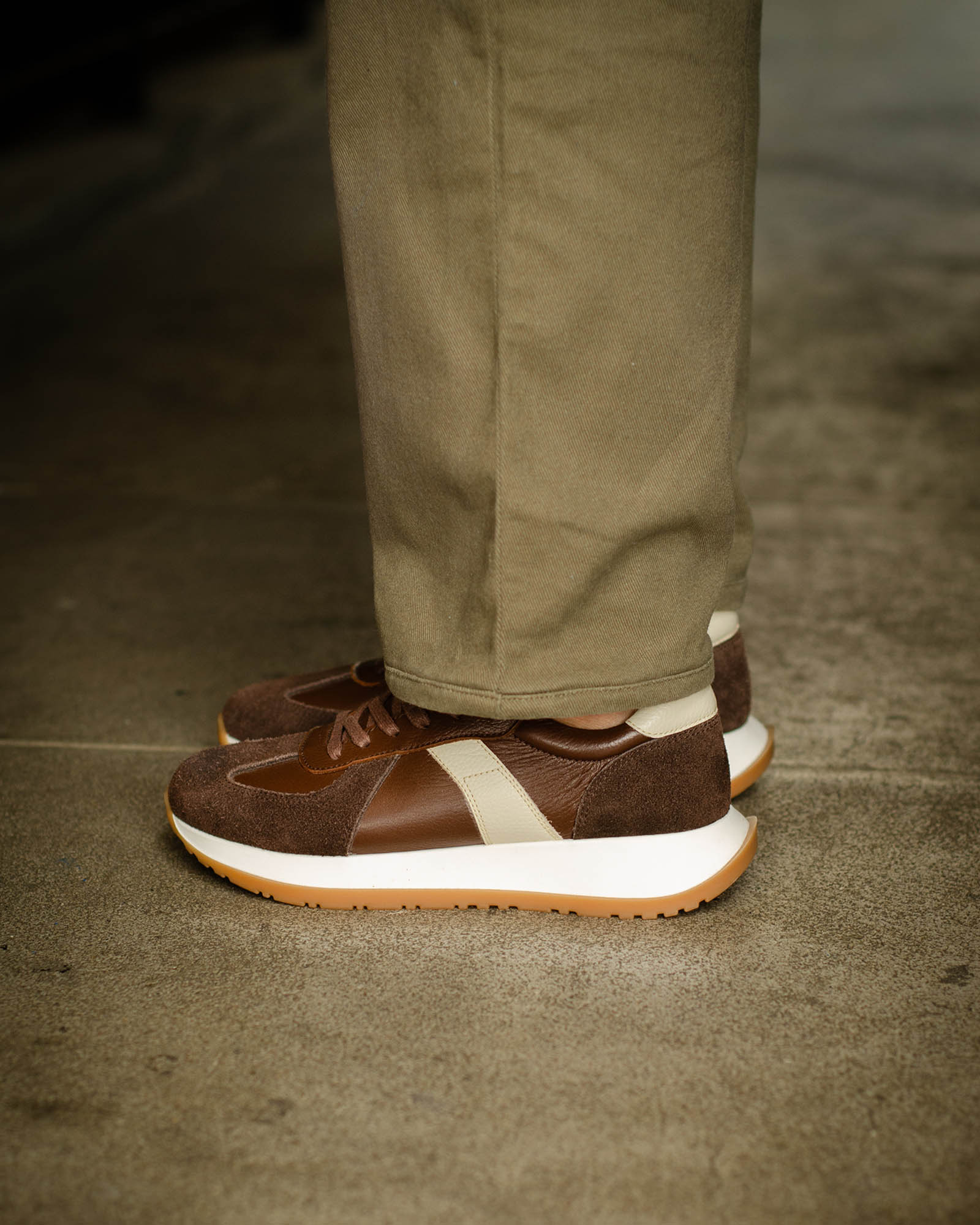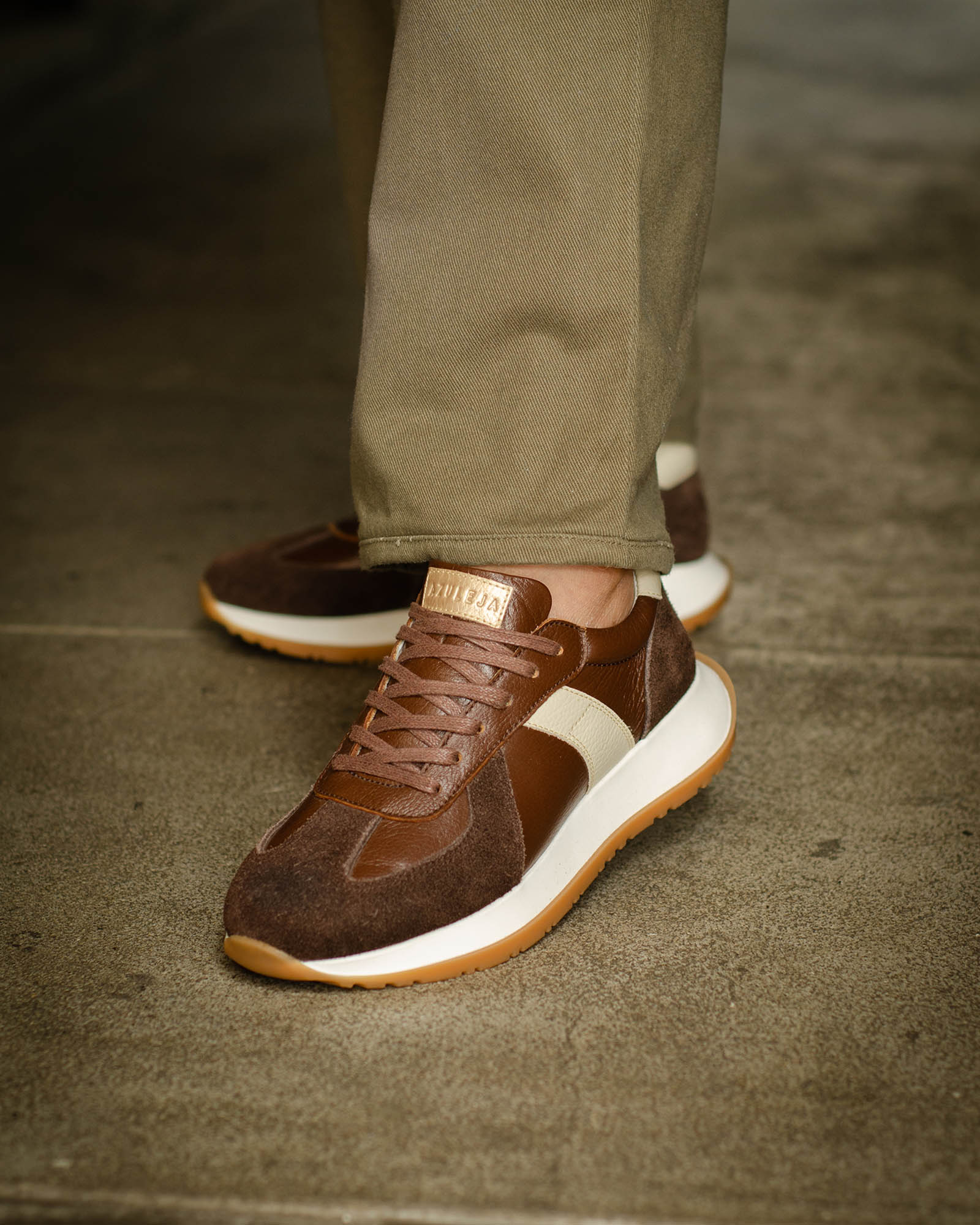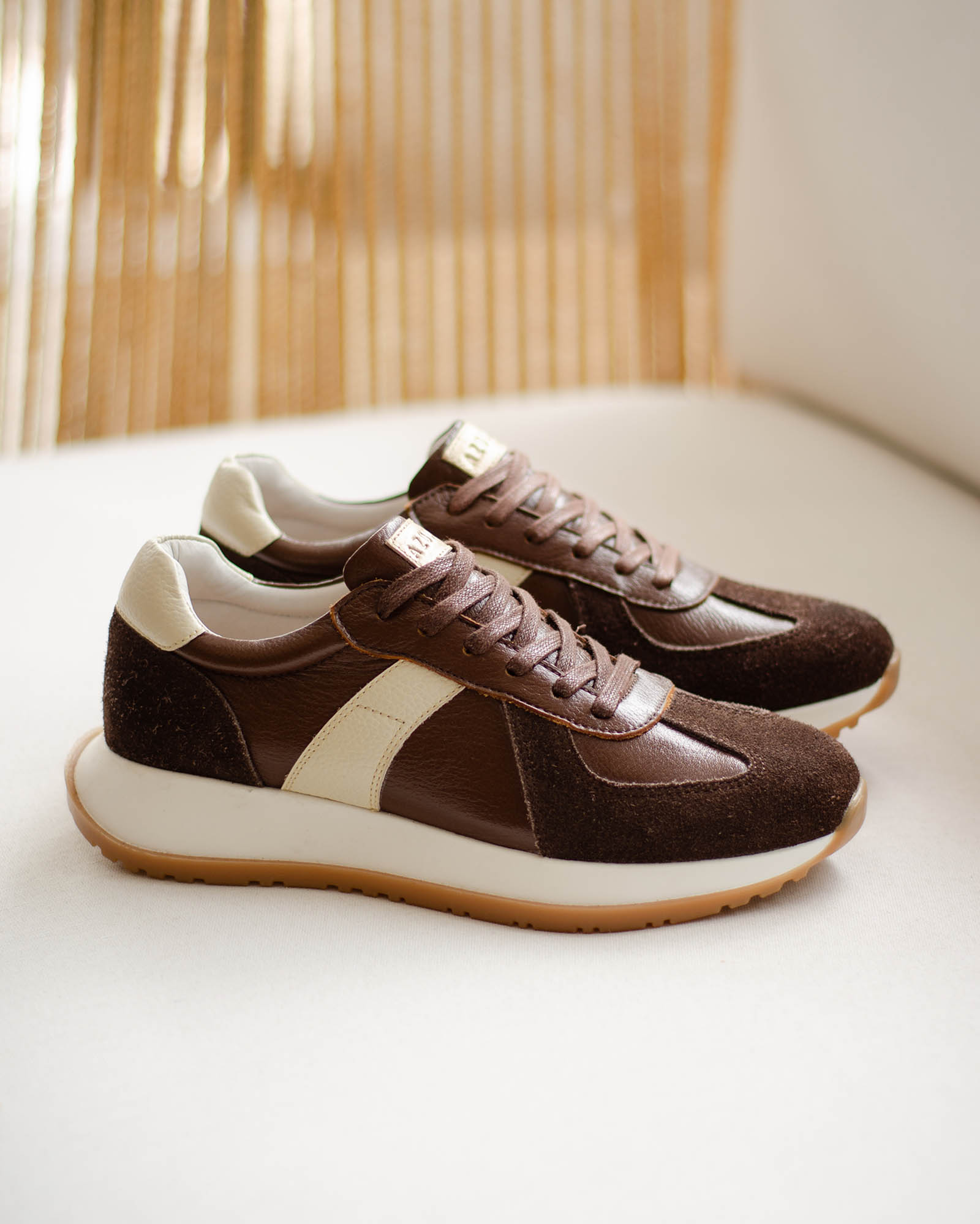 Estos tenis en tono chocolate y beige traen de vuelta lo clásico con un estilo que nunca pasa de moda. La suela tipo sneakers completan un atuendo vintage que combina perfecto.